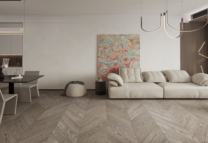 Lantai kayu chevron yang direkayasa